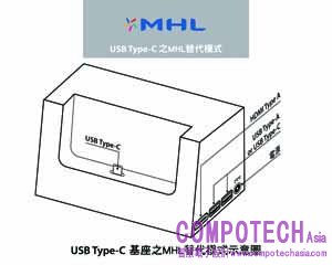 2014年11月18日--MHL, LLC宣布推出符合USB Type-C規格之MHL®替代模式 (Alternate Mode; Alt Mode)。USB Type-C連接器和傳輸線可透過此模式支援MHL 3規格,提供4K影像播放、多聲道環繞音效和HDCP 2.2 技術,還可與現有各式MHL規格向下相容。MHL聯盟持續創新MHL規格引領業界需求,提供支援USB Type-C等更多的附加功能與連接器標準。
