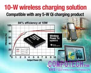 2014年12月4--德州儀器 (TI) 宣佈推出一款業界首款全面整合型 10 W 無線充電接收器及相應發送器的更高效解決方案,其可幫助工業、醫療及個人電子產品的設計人員讓設備在擺脫所有連接器的同時,更快、更高效地充電。bq51025 和 bq500215 都已投入量產,不僅支援防水及防塵可攜式設計,還可為 1 節及 2 節 (1S 和 2S) 鋰離子電池實現更快及更低溫地充電。此外,該充電解決方案還相容於市場上任何符合 5 W Qi 標準的產品,有助於消費性產品在更多的地方進行高彈性地充電。如欲訂購樣品與評估模組,敬請參訪:www.ti.com/wirelesspower-pr-tw。