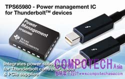 • Thunderbolt認證:作為Thunderbolt匯流排供電解決方案的唯一推薦認可解決方案,TPS65980可幫助用戶縮短設計階段