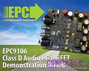 EPC9106演示板的特點是採用EPC2016 eGaN FET並配備了專爲eGaN FET而設的德州儀器公司的閘極驅動器(LM5113)。該演示板展示了由於eGaN FET具備高頻開關性能,因此小型尺寸也可以實現高音質效果。以此高效的優勢,EPC9106演示板的設計可以省去散熱器、减低有可能導致EMI/EMC輻射排放的機會及降低系統的整體成本。