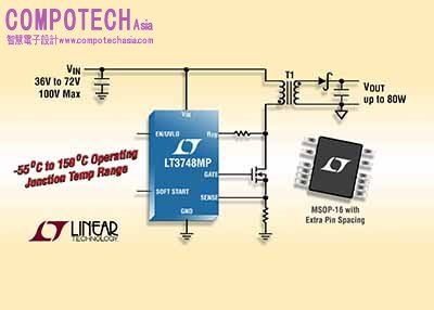 2015 年3月20日--凌力爾特(Linear Technology Corporation ) 日前發表MP等級版本的高輸入電壓隔離式返馳DC/DC控制器LT3748,由於輸出電壓可從一次側返馳訊號進行感測,因而此元件不需以光隔離器、第三個繞組或訊號變壓器來進行回授,可大幅簡化隔離式DC/DC轉換器之設計。LT3748可操作於5V 至100V 的輸入電壓範圍,並可驅動外部N通道電源MOSFET,因此適用於廣泛的汽車、工業、電訊、資通訊應用。