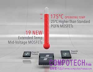 2015年3月18日--領先全球的高效能電源半導體解決方案供應商Fairchild(快捷半導體)(NASDAQ 代號: FCS)推出擴展溫度 (ET:Extended Temperature)) 中電壓 MOSFET(作業溫度 175°C),製造商借此可改進其產品的可靠性與性能。 較高的作業溫度可將功率密度提高 85%,其可靠性更是超出行業標準 MOSFET(額定 150°C)三倍之多。