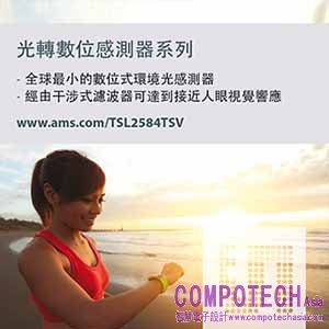 2015年4月29日--奧地利微電子公司(SIX股票代碼:AMS)今日推出環境光感測器TSL2584TSV,採用矽通孔技術,封裝尺寸僅為1.145 x 1.66mm,高度為0.32mm。