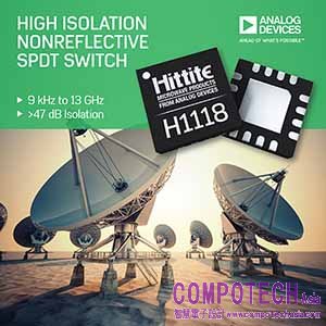 2015年5月21日--全球高效能半導體訊號處理解決方案領導廠商Analog Devices, Inc. (ADI)公司推出一款為9 KHz到13 GHz特定頻段應用的吸收式單刀雙擲(SPDT)開關,具備了在8 GHz操作時48 dB高隔離度和0.6 dB低插入損耗性能表現。HMC1118LP3DE是ADI新型射頻和微波控制產品陣容中,首款展現矽製程技術先天優勢的產品,提供了超越傳統砷化鎵射頻開關的關鍵優勢。這些優勢包括比砷化鎵快一百倍的穩定時間,強大的靜電放電(ESD)保護(2000V vs.砷化鎵的250V),並具有延長開關的低頻端較砷化鎵低一千倍的能力,同時維持高線性度。