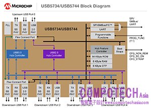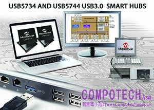 2015年6月4日--全球領先的整合微處理控制器、混合訊號、類比元件和快閃記憶體矽智財解決方案的供應商——Microchip Technology Inc.(美國微芯科技公司)今日於台北國際電腦展發表第一個支援主控與裝置連接埠交換、輸入/輸出橋接以及各種串列通訊介面的USB 3.0智慧型集線器─ USB5734及USB5744。此系列產品整合了微控制器,賦予USB 3.0全新的功能,同時降低整體零件成本以及簡化軟體設計。USB5734/44系列通過USB-IF認證(TID 330000058),提供業界最佳的訊號完整性,可搭配更龐大的電路板設計、減少線材與連接器的限制,佈局也能更多樣化。