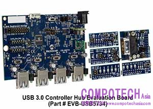 USB5734與USB5744現可由Microchip USB 3.0 Controller Hub Evaluation Board (元件編號:EVB-USB5734)以及USB 3.0 Small Form Factor Controller Hub Evaluation Board (元件編號:EVB-USB5744)支援,EVB-USB5734包含可以作為預設應用配置的夾層卡(Mezzanine Card),以便USB5734系統的測試與開發。