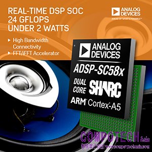 2015年6月17日--全球高效能半導體訊號處理解決方案領導廠商Analog Devices (ADI)亞德諾半導體公司,針對高性能、高節能效率與即時性新產品系列推出八款SHARC®處理器,這些新品透過採用兩個增強型SHARC+®內核、先進DSP加速器(FFT、FIR、IIR),提供超過每秒240億次浮點運算(FLOPS)的最佳性能。由於ADSP-SC58x與ADSP-2158x系列在高溫下功耗小於2瓦,使得新處理器系列的節能效率優於前代SHARC產品的5倍以上,且超過同級競爭處理器2倍以上。在散熱管理對功耗形成限制,或無法容忍成本高、可靠性低的風扇等應用中,這些優勢提供了領先業界的數位訊號處理性能。適用領域包括汽車、消費性和專業級音響、多軸馬達控制和能源分配系統等。欲知詳情請瀏覽影片: http://analog.com/ADSP-SC58xVideo。