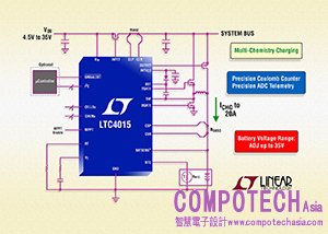 2015年7月16日--凌力爾特 (Linear Technology Corporation) 日前發表高整合度、高壓多化學性同步降壓電池充電控制器LTC4015,元件並具備晶片上的遙測功能。LTC4015可有效率地從諸如牆式電源轉接器和太陽能板等各式輸入源傳輸電力至鋰離子/聚合物、磷酸鐵鋰或鉛酸電池堆和負載高達35V的系統。元件提供先進的系統監控和管理功能,包括電池庫侖計數和健康監測。當主微控制器需要存取LTC4015的最先進功能時則可使用選配式的I2C 埠,而主要充電功能可透過引pin-strap配置和編程電阻來調整。