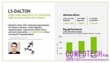 但有了 OpenACC 後,他可以用 CPU 在幾天內將 LS-DALTON 的主要演算法加速多達12倍,而且他完全不用改變應用程式中的演算法,即可在其中一台全球效能最強的超級電腦中執行該應用程式。
