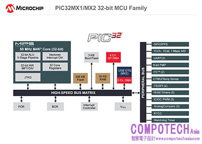 2015年8月20日--全球領先的整合微處理控制器、混合訊號、類比元件和快閃記憶體矽智財解決方案的供應商——Microchip Technology Inc.宣佈推出全新32位元PIC32MX1/2微處理控制器(MCU)系列產品,具有256KB大容量快閃記憶體配置以及16KBRAM採小尺寸封裝。新系列為廣受歡迎的MCU產品新成員,替需要複雜演算法的應用程式提供了低成本應用及靈活性。同時,Microchip還為新系列配備了全面的軟體和工具,以支援圖形、觸控感測和通用嵌入式控制等應用的設計。