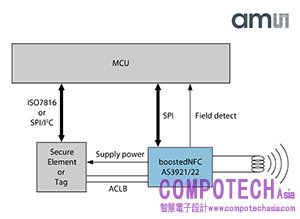 搭載boostedNFC技術的AS3921採用超小型晶圓級晶片尺寸封裝,尺寸只有2.115mm x 1.735mm,並且直接連接至安全元件,所需的外部元件很少,採用主動負載調變(ALM)方式傳輸數據:它會產生一個和讀取器磁場同步的RFID card應答訊號。相較於非接觸式卡片所使用的被動負載調變(PLM),AS3921讓卡片對讀取器的通訊能夠在比PLM所可能支援之耦合係數還要低甚至一個數量級的情形下進行。