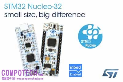 2015年10月26日--意法半導體(STMicroelectronics,簡稱ST;紐約證券交易所代碼:STM)持續擴大其STM32 Nucleo開發板組合,新增了三款可擴展、可支援32針腳的小型STM32微控制器開發板。新款STM32 Nucleo-32開發板擁有各種整合開發環境(IDE)的直接支援,允許開發人員直接使用mbed的線上資源。搭載STM32微控制器,透過Arduino Nano介面插入各種可用硬體,STM32 Nucleo開放式平台有助於簡化原型開發過程,從而降低開發成本。