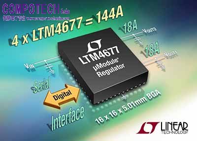 LTM4677 具備快速、雙組類比控制迴路,以及精準的混合訊號電路,並採用16mm x 16mm x 5.01mm BGA (球柵陣列) 封裝。LTM4677 內部操作溫度範圍為 –40°C 至 125°C。千顆量購計之單價為$39.60 美元起。更多資訊請參閱: www.linear.com/product/LTM4677.