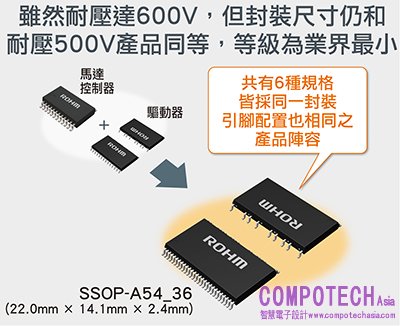 ROHM半導體憑藉高效率的馬達控制器和高耐壓的功率元件進軍上述市場,並且獲得極佳的成績。此次則是推出結合2者優勢、方便操作,且目標為全球市場的高耐壓風扇馬達單1封裝驅動元件系列產品。