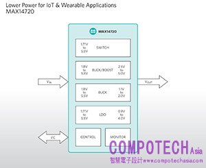 2016年1月7日--Maxim Integrated Products, Inc. (NASDAQ: MXIM)推出MAX14720電源管理晶片(PMIC),幫助可穿戴醫療/保健和物聯網(IoT)應用設計人員優化功耗指標、延長電池使用壽命。