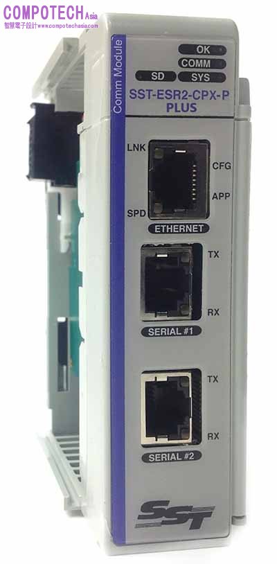 第一款模組為標準版本 (SST-ERS2-CPX-S),而第二款模組為增強版本 (SST-ESR2-CPX-P),支援更強大的 30,000 個 I/O 字組定址以及每埠 256 個 Modbus 命令。這些模組具備兩個獨立的 RS232/RS422/RS485 序列埠,支援 ASCII 和 RTU 格式。這些埠在配置後可作為 Modbus 主模組和/或 Modbus 從模組運行。軟體自動確定 Modbus 訊息是否屬於 RS232/RS422/RS485 標準,從而避免發生雙列直插式元件開關設置不正確的問題。此外,各模組都具有一個乙太網埠(獨立於 CompactLogix 乙太網埠),可執行 Modbus TCP 協定。