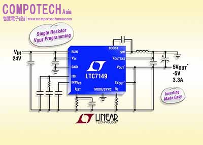 2016年4月8日--凌力爾特(Linear Technology Corporation ) 日前發表高效率的60V、4A同步降壓穩壓器LTC7149 ,元件適用於負輸出電壓電源,整合了電流模式架構及使用者可選擇的內部或外部迴路補償,以及一個可透過外部電阻設定的輸出電壓。LTC 7149可操作於3.4V至60V的輸入電壓範圍,並提供從0V至 -28V的可調輸出電壓,同時提供高達4A的連續輸出電流。寬廣輸入和輸出電壓範圍使其非常適用於廣泛的測試、量測和工業應用。LTC7149的獨特設計包括ISET針腳上由內部產生的精準50µA電流源,使其能夠透過單個外部編程電阻提供低至 -28V的輸出。此外,LTC7149提供±0.8%的輸出電壓精度,另外開關頻率為用戶可設定,範圍為300kHz至3MHz,因此允許使用纖小、低成本的電容和電感。結合28接腳4mm x 5mm的QFN或散熱加強型TSSOP封裝,提供一個非常精小的方案腳位。