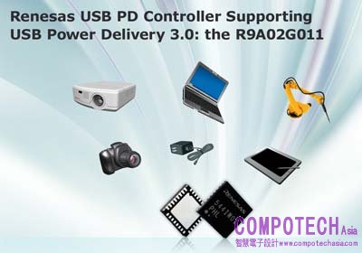 2016年4月13日--先進半導體解決方案之頂尖供應商瑞薩電子(TSE:6723)今日發表支援USB PD 3.0規格的通用序列匯流排(USB)供電(PD)控制器(零件編號R9A02G011,µPD720250的後繼產品)。新款USB PD控制器不僅支援PC與智慧型手機應用,亦支援其他各種使用直流(DC)電源的裝置,包括PC周邊裝置、交流電變壓器、投影機、機器人及其他消費性電子產品。