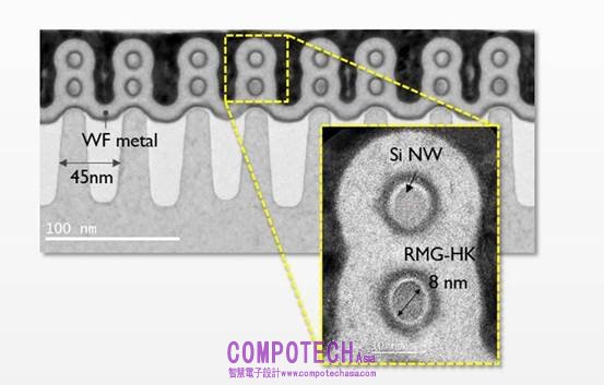 「IMEC已在實現sub-10nm技術節點的道路上有了突破性的進展,體現在微縮尺寸的奈米線堆疊上與固態靜電控制,同時將業界的RMG製程運用在矽質塊材基板上。」IMEC的邏輯裝置與積體電路總監Dan Mocuta表示:「後續的研究階段將會著重於達成更密的間隙上,並以此知識基礎,發展環繞式極匣橫向奈米線CMOS裝置。」