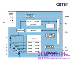 TMD3700的占位面積只有4.00 x 1.75mm,是市場上占位面積最小的光學感測器,高度僅為1.00mm,下一代手機在外形及機械設計上具有極其嚴格的要求,該新品小巧的外觀將成為其理想選擇。具45度的寬闊視野,環境光感測精度誤差僅為10%,在深色玻璃下的運作範圍為200mlux至60Klux,使智慧型手機能夠測量周圍的光環境並自動調整螢幕顏色和亮度從而獲得最佳顯示效果。
