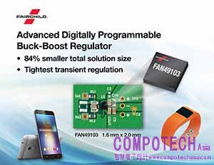 2016年9月2日--Fairchild (NASDAQ 代碼: FCS) 全球領先的高效能半導體解決方案供應商,今天宣佈推出其最先進的數位可編程降壓-升壓調節器,適用於智慧型手機、平板電腦及其他電池供電的行動裝置電源。FAN49103 調節器以及備受青睞的 FAN49100 系列中的其他產品,兼具最高功率密度、最小外形設計、最嚴密的瞬態調節,以及同類最佳的紋波效能,因而能夠滿足這些電源的嚴苛要求。