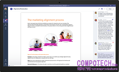 Microsoft Teams 將Office 365既深且廣的大大小小功能完全匯聚在一起。使用者可以直接在Microsoft Teams內,隨時使用語音和視訊會議,或分享、編輯 Office文件。Microsoft Graph能夠運用智慧技術,協助使用者處理、搜集和分享相關資訊。同時,由於Microsoft Teams是建立在Office 365 Groups之上,此跨應用的會員服務能夠讓使用者更自然地切換不同的協作工具,保留合適的內容,並能輕鬆與其他人分享。