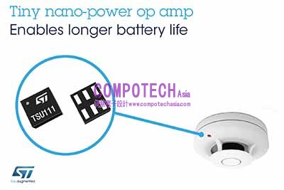 2016年12月22日--橫跨多重電子應用領域、全球領先的半導體供應商意法半導體(STMicroelectronics,簡稱ST;紐約證券交易所代碼:STM)的TSU111低功耗運算放大器,晶片封裝面積僅1.2mm x 1.3mm,具備900nA的典型工作電流,將其類比電路的尺寸和功耗降至最低,並適用於醫療監視、穿戴式設備、氣體檢漏儀、pH感測器、紅外線動作感測器和支付標籤。