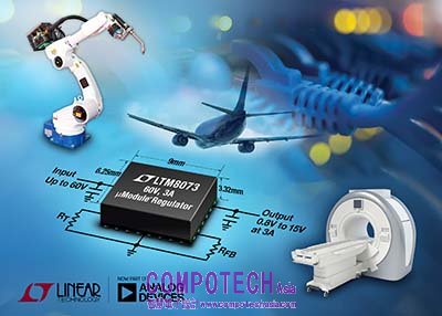 2017年4月13日—亞德諾半導體 (Analog Devices, Inc.,簡稱 ADI) 旗下的凌力爾特日前推出µModule® (電源模組) 降壓穩壓器 LTM8073,該元件具備高達 60V 的輸入電壓範圍 (65V 絕對最大值)。在諸如通訊基礎設施、工廠自動化、工業機器人和航空電子系統等雜訊環境中,該元件可安全地採用未穩壓或波動的 24V 至 48V 輸入電源運作。Silent Switcher® 架構最大限度降低了 EMC/EMI 輻射,使 LTM8073 能夠滿足 CISPR 22 Class B 要求,以用於包括成像和 RF 系統在內的訊號處理應用。