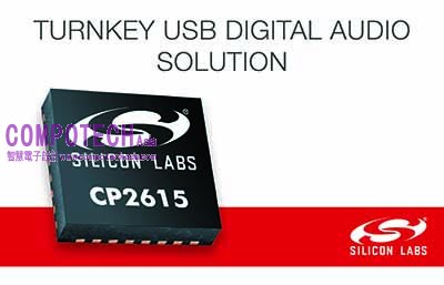 單晶片CP2615音訊橋接器採用精小的5mm x 5mm QFN-32封裝,非常適合可攜式音訊應用中空間受限的印刷電路板(PCB)。功能齊全的CP2615元件整合了USB 2.0全速功能控制器、USB收發器、內部振盪器、I2S音訊介面、I2C控制介面和用於存放裝置配置的嵌入式快閃記憶體。這種高整合度無需外部元件,大幅降低了PCB尺寸和BOM成本。