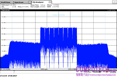 R&S FSW-B2001選項提供14位元ADC分辨率和極寬的動態範圍,其特點是優異的SFDR;例如,1200 MHz頻寬其SFDR為 -65 dBc,直接轉化成出色的訊號分析效能。R&S FSW可在28 GHz頻寬使用OFDM訊號(792 MHz 頻寬、300 kHz載波間隔、64 QAM、4096 載波數),可測量約 -40.0 dB的EVM值。