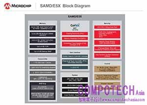 這些新型MCU具有多種介面提供了設計的靈活性,即使是要求最多的連接需求都能滿足。這些系列包含一個具有晶片內執行(XIP)特性的四線式串列週邊介面(QSPI)。這使系統能够使用高性能串列快閃記憶體,與傳統的接腳並列快閃記憶體相比,不但體積小而且價格便宜,滿足了外部記憶體需求。SAM D5/E5裝置還具有用於資料登錄的安全數位主機控制器(SDHC)、用於電容式觸控功能的週邊觸控控制器(PTC)以及業界最佳的功耗性能比(65 uA/MHz) 非常適用於高能源效率需求的應用。此外,SAM E5系列包含兩個CAN-FD連接埠和一個支援IEEE 1588的10/100Mbps乙太網路媒體存取控制器(MAC),因此非常適合工業自動化、家庭聯網和其它物聯網(IoT)的應用。