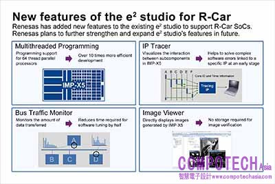 適用R-Car V3M的e² studio將於2018年第一季上市。瑞薩並計劃進一步擴展e² studio,以支援更多的車用裝置。