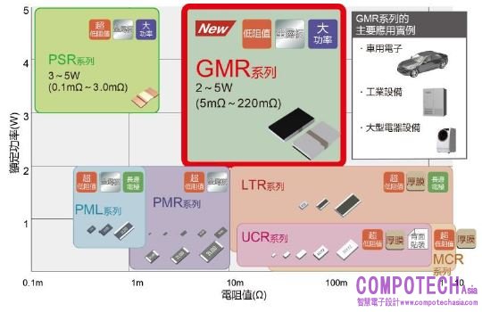 在傳統的超低阻值PSR系列(0.1∼3mΩ)基礎上,新增阻值更大的GMR系列(5∼220mΩ)產品。