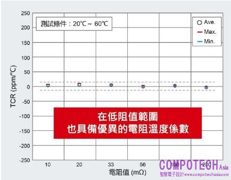 3. 低阻值範圍也具備優異的電阻溫度係數