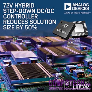 2018年1月10日--Analog Devices, Inc. (ADI) 宣佈推出 Power by Linear™ 的 LTC7821,該元件為業界首款混合式降壓同步控制器,結合了開關電容器電路與同步降壓控制器,可使 DC/DC 轉換器解決方案尺寸比傳統降壓解決方案銳減 50% 。此種改良透過將切換開關頻率提高 3 倍而實現,並且無損效率。另一方面來說,當操作於相同的頻率時,以LTC7821 設計的解決方案能提供高達 3% 的效率提升。LTC7821 的其他優勢包括低 EMI 和更低的 MOSFET 衝擊 (前端採用軟開關),因此非常適合功率分配、資通訊和電訊,以及新興 48V 汽車應用中的下一代非隔離式中間匯流排應用。