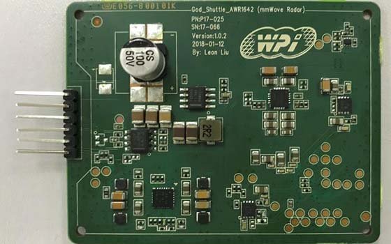 採用德州儀器AWR1642單片高整合FMCW雷達感測器晶片,體積小且整合度高