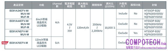 <車電液晶背光用LED 驅動器IC 產品系列>