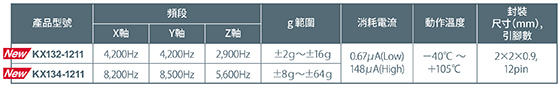 KX132-1211可檢測的頻段高達4,200Hz、加速度(g)範圍寬達±2g~±16g,而進階產品KX134-1211 可檢測的頻段高達8,500Hz、加速度(g)範圍寬達±8g~±64g。另外,與傳統產品最高只有85℃的工作溫度相比,這二款產品在高達105℃的環境下也可正常運作。產品系列不僅支援高溫工作,而且支援的頻率和加速度檢測範圍廣,因此非常適用於工控裝置的馬達振動分析等機器健康監測運用。