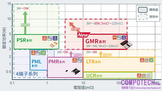 此次研發的新產品,電阻體金屬採用高性能合金材料,在低阻值範圍也能保有出色的電阻溫度係數(TCR)。例如,在5mΩ 時,可達到0~+25ppm/℃。