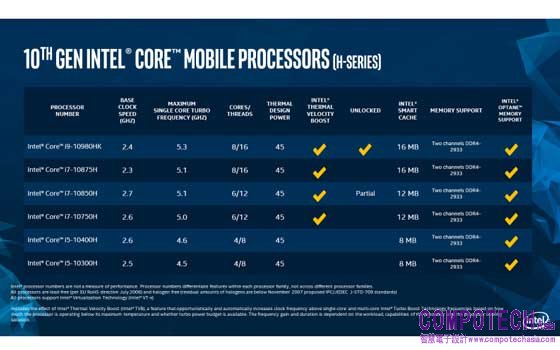 第10代Intel® Core™ 筆電(H系列)處理器產品規格表
