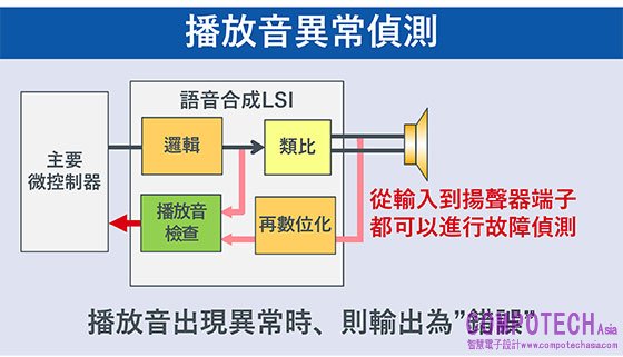 LAPIS半導體的新產品不僅可以減少主控MCU的軟體設計,還能構建語音輸出系統,甚至可以利用播放音異常檢測功能找出語音問題,有助進一步提高語音輸出系統品質。