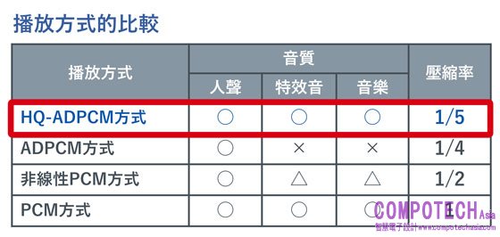 3.採用HQ-ADPCM壓縮方式,兼顧高音質與節省記憶體