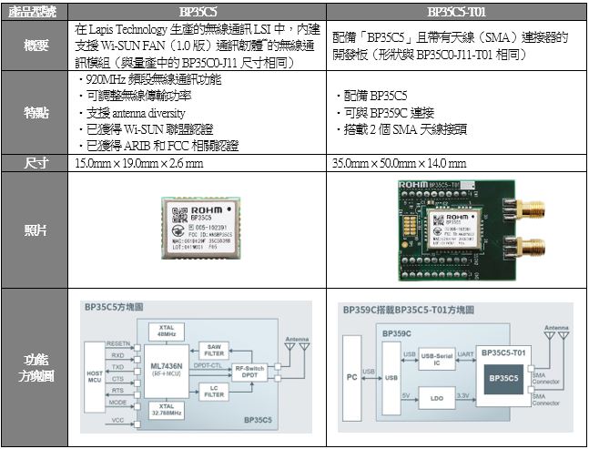ROHM官網上已可查詢Wi-SUN FAN 模組「BP35C5」和開發板「BP35C5-T01」技術資料,以及下載開發時所需的使用者指南等各類文件。