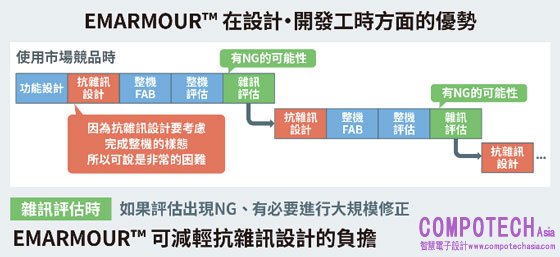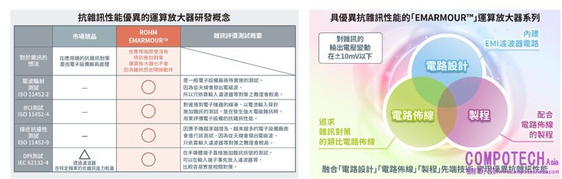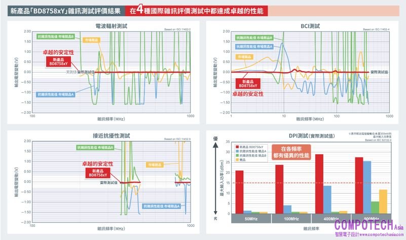 基於上述原因,ROHM充分利用垂直整合生產體制和類比設計技術優勢,從2017年開始研發EMARMOUR™系列,該系列產品具有非常出色的抗雜訊性能,有助減輕降噪設計負擔,在車電和工控裝置市場獲得高度好評。