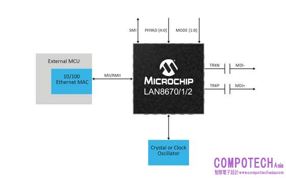 Microchip的LAN8670、LAN8671和LAN8672乙太網PHY是業界首款按照IEEE發佈的最新10BASE-T1S單對乙太網標準設計和驗證的產品。10BASE-T1S解決了為工業應用創建全乙太網架構的挑戰,如製程控制、大樓自動化和採用多種互連技術的系統整合。該配置實現了多接點(匯流排線)拓樸結構,減少了電纜,能在印刷電路板上進行開發,至少有8個節點,且支援距離範圍不低於25米。