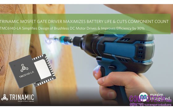 2021年8月17日--TRINAMIC Motion Control GmbH & Co. KG (Maxim Integrated Products, Inc (NASDAQ: MXIM)子公司) 宣佈推出完全整合的TMC6140-LA 3相MOSFET柵極驅動器,有效簡化無刷直流(DC)馬達驅動設計,並最大程度地延長電池壽命。TMC6140-LA 3相MOSFET柵極驅動器為每相整合了低邊檢流放大器,構成完備的馬達驅動方案;與同類產品相比元件數量減半,且電源效率提高30%,大幅簡化設計。