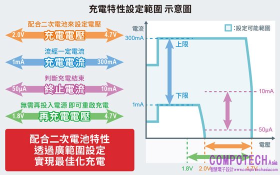 近年來,小巧輕薄型物聯網裝置對於更安全、高密度的二次電池需求逐漸提升,採用新材料作為電解部分的全固態和半固態電池、或改變電極材料等新型二次電池的研發進度也不斷加速。另一方面,很多新型二次電池小巧輕薄,需要2V~3V級的低電壓充電,卻沒有可以支援廣範圍電壓的充電控制IC。