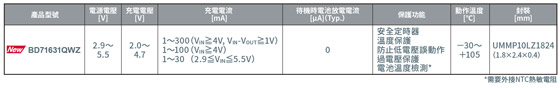 由於BD71631QWZ可以透過外接電阻獨立設定CCCV充電的充電特性(充電電壓、充電電流、終止電流、再充電電壓),因此,可根據不同容量的二次電池特性實現理想充電。即使在設計應用產品時需要更換電池,也無需重新選擇零件即可進行設計,有助減少設計工時。此外,待機狀態下的0μA放電和內建各種保護功能,能夠確保二次電池應用裝置的長時間工作,提高充電過程中的安全性。