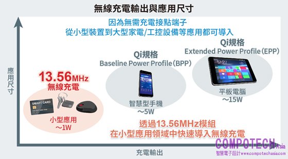 由於新產品使用與NFC通訊標準相同的13.56MHz高頻段,因此透過內建模組的天線可以同時支援供電和通訊兩種功能。將可進行雙向資料通訊(通訊速度為212kbps,最多256位元組)和NFC Forum Type3 Tag通訊,有助擴充應用產品的資料通訊功能,比如感測器資料、裝置資訊和認證資訊的資料安全傳輸與改寫、韌體下載、電池輸出電壓值的傳輸等。