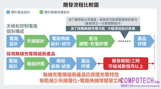 近年來,包含智慧型手機和智慧型手錶等,越來越多的應用裝置採用無需充電端子、且提高防水防塵性能的無線充電功能。然而,現有無線充電標準的頻率較低,且為了符合標準,而限制了天線的小型化發展,因此,業界開始對於小型裝置通用的標準和方式寄予厚望。另外,由於無線充電功能的供電效率會因天線的形狀、尺寸及距離等而產生變化,因此需要在電子裝置上反覆進行測試、調整、評估後,才能安裝無線充電功能。也因此對於天線設計和佈局設計來說,研發一直是很大的負擔。在上述背景下,ROHM推出了13.56MHz無線充電模組,可以讓小巧輕薄的裝置輕鬆搭載無線充電功能。